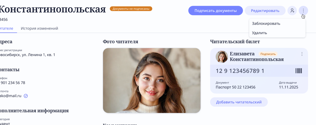 Деактивация и удаление данных о читателе